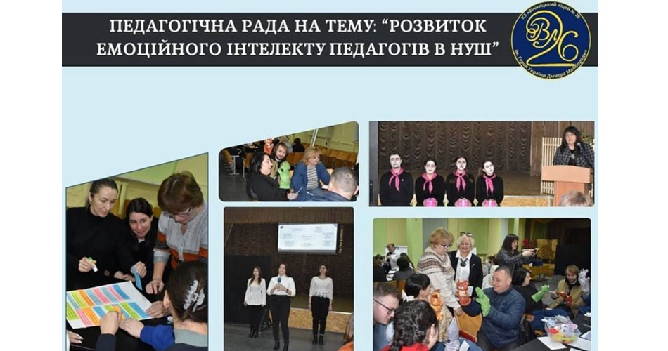 25.05 була проведена педагогічна рада на тему: «Розвиток емоційного інтелекту педагогів в НУШ». Вчителі вивчали та практикували різні стратегії та тактики з розвитку емоційного інтелекту педагогів.
